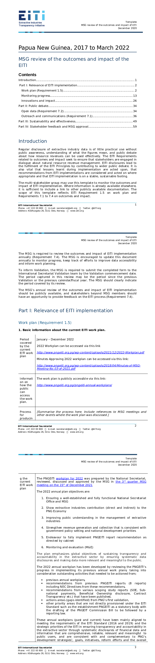 The EITI Board has determined that Papua New Guinea will have its next Validation commencing on